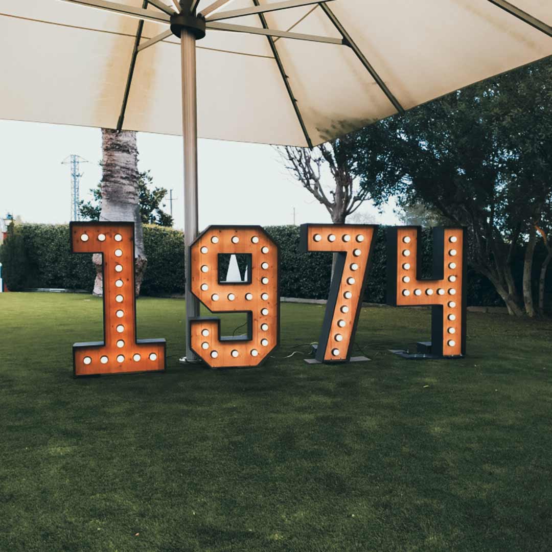 Si estás buscando complementar los números con letras para tu evento disponemos de alquiler letras luminosas para eventos.